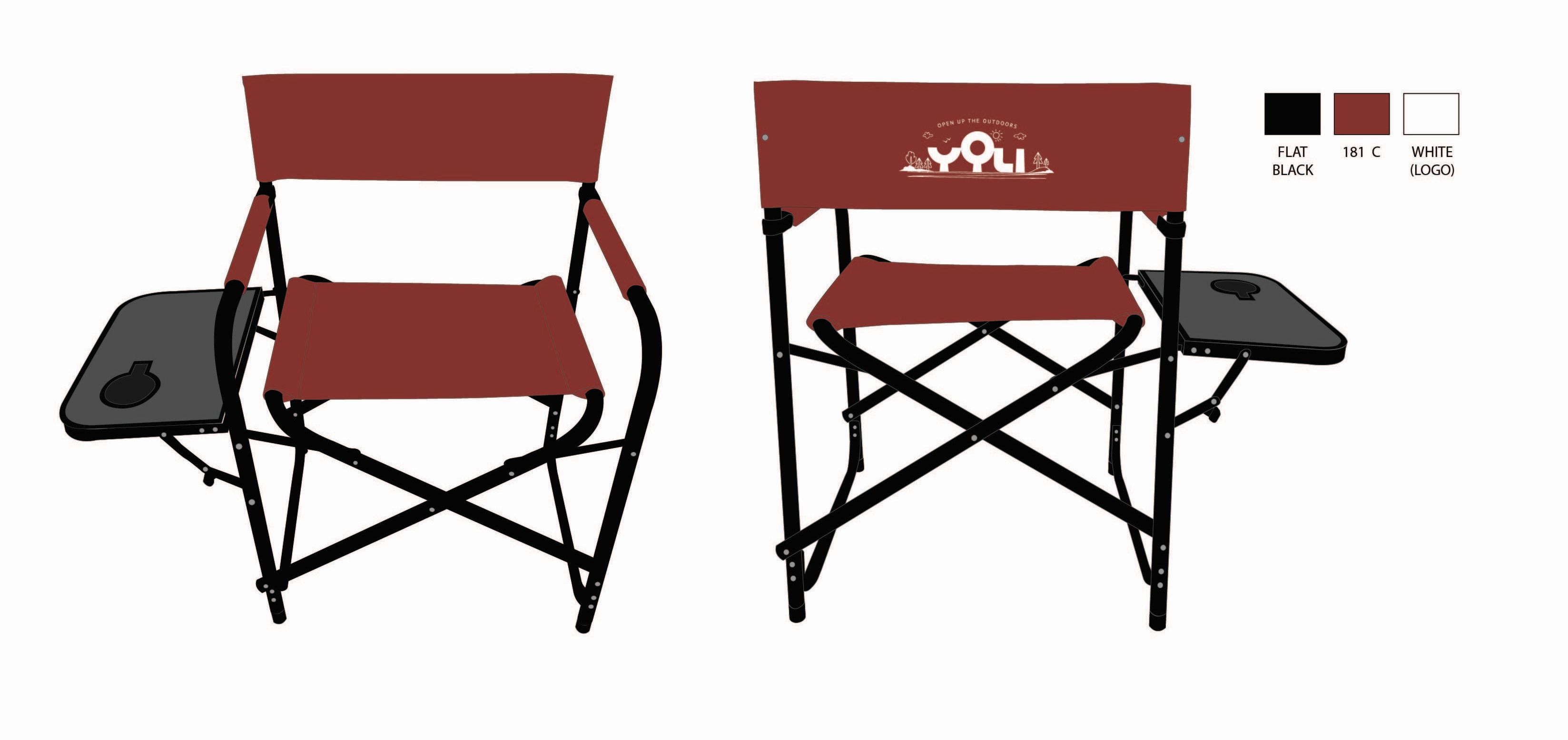 Portable folding camping chair designed for hours of comfortable outdoor sitting with folding table and cup holder.Specifications
