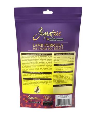 Treat time is even more rewarding with Zignature Lamb Flavored Soft Dog Treats! These savory, moist treats are made with the same limited-ingredient philosophy as Zignature’s dry and canned food. Your dog will love the drool-worthy aroma of real lamband you’ll love knowing these soft treats go easy on his stomach. Plus, the small size is paw-fect for use during training. Zignature soft treats make an enticing, high-value reward for even the pickiest pups!Specifications