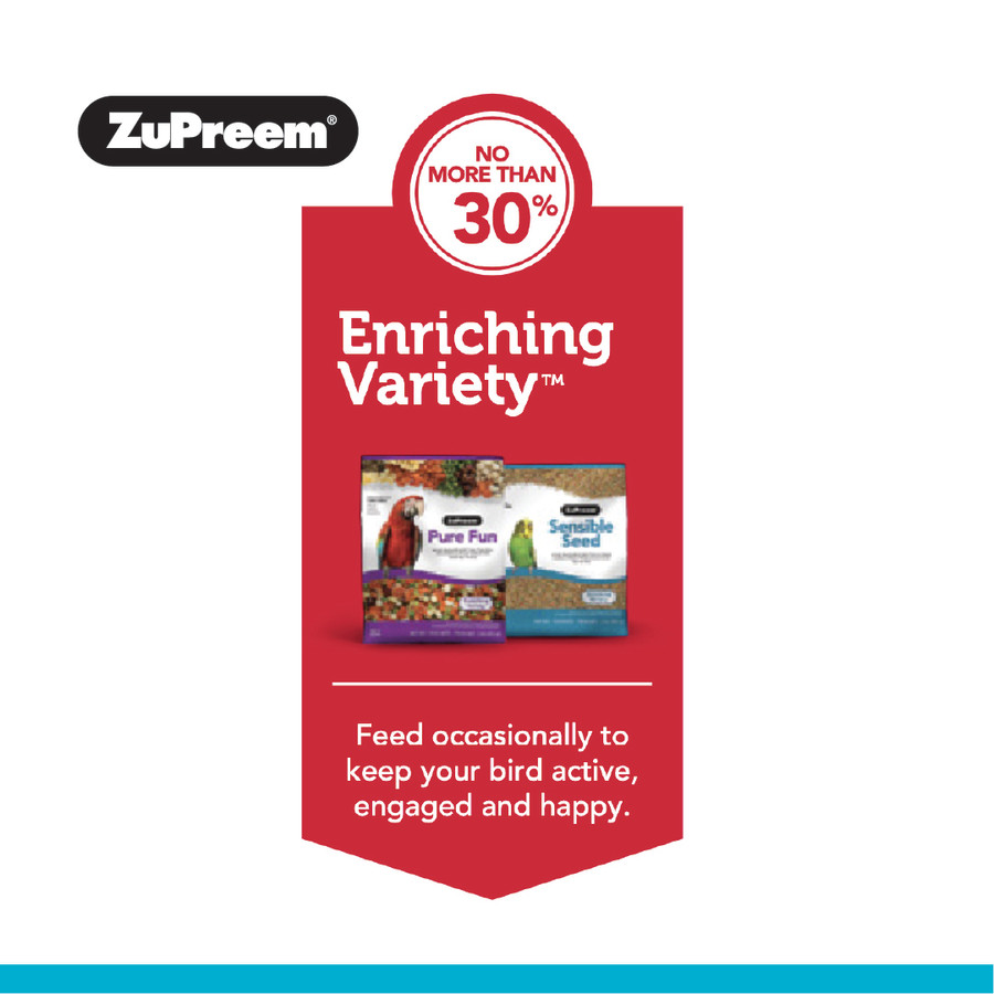 PREMIUM VARIETY IN A SENSIBLE SEED BLEND; SENSIBLE SEED IS SO GOOD WE BACK IT UP WITH A 10% GUARANTEE!; THIS BLEND CONTAINS A MIX OF SQUASH SEEDS, SHELLED PUMPKIN SEEDS, SAFFLOWER SEEDS, GROUND CORN & MORE!; THIS FOOD ENCOURAGES YOUR BIRD'S FORAGING INSTINCTS; THIS FOOD IS PLAYFUL & PROVIDES RICH VARIETY TO YOUR BIRD'S DAILY DIET